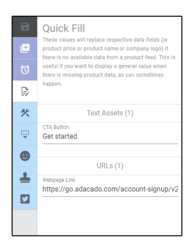 The quick fill feature allows you to copy text information from one template to another. Text information like product title, price, CTA can be easily added to all template sizes by using this feature.